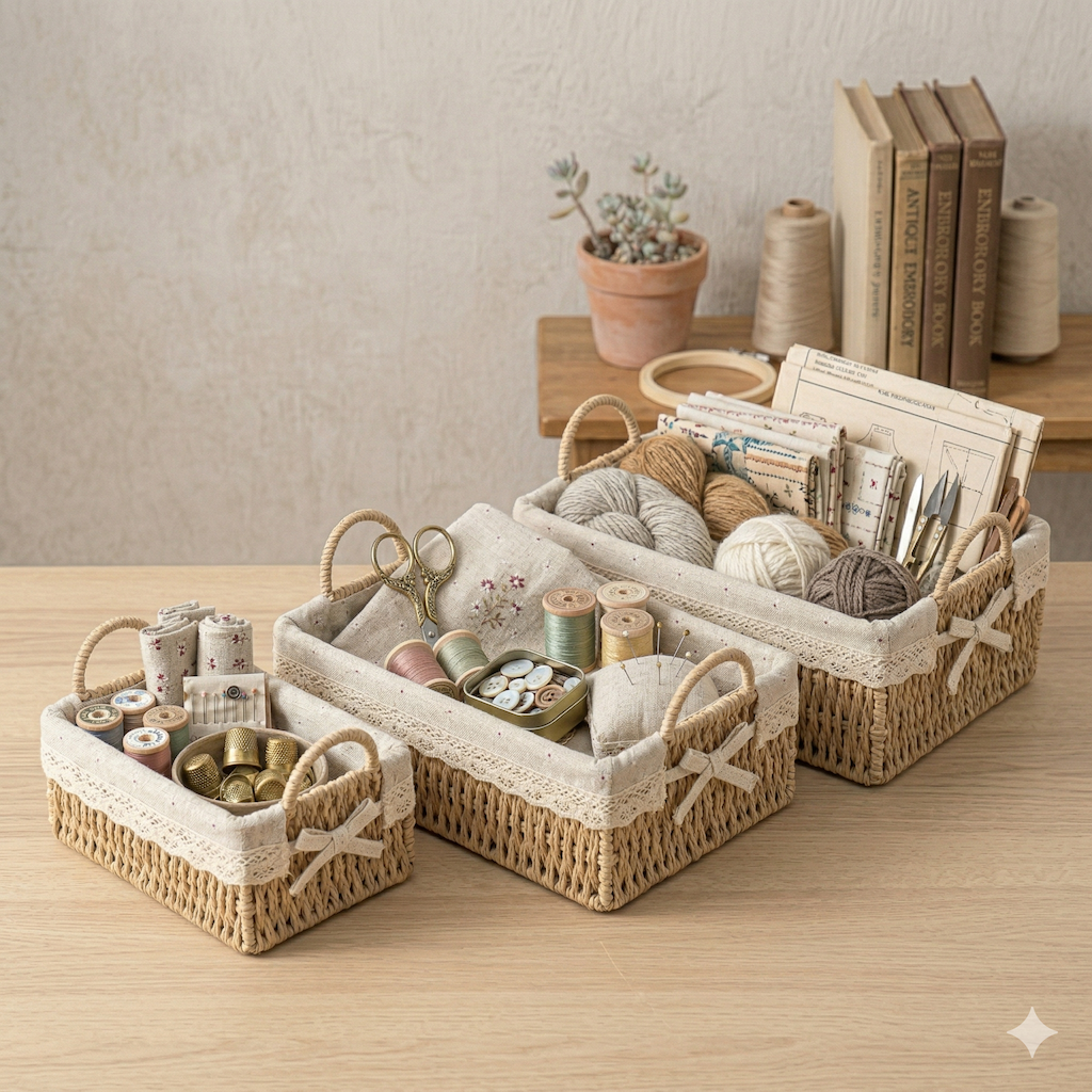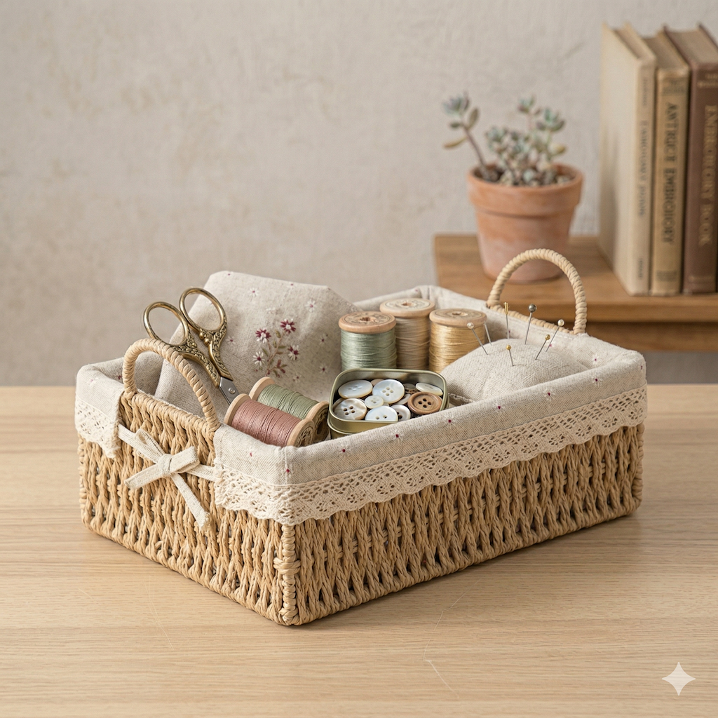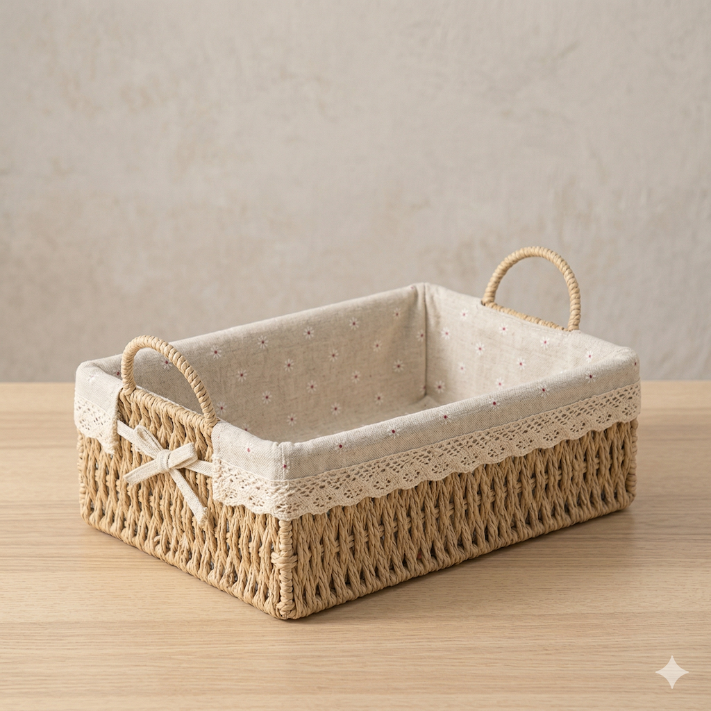 Estructura Rígida: A diferencia de las cestas de tela, el mimbre ofrece una base sólida que mantiene su forma perfectamente, ideal para contener objetos con peso o para ser apilada en estanterías.