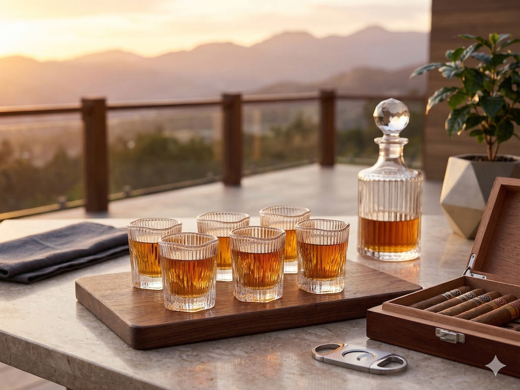 Transforma tus momentos de celebración con una pieza que redefine el concepto del “shot” tradicional. Nuestras Copas Cortas han sido creadas para quienes aprecian los detalles finos. Su diseño con tallo permite sujetar la copa sin calentar el licor con las manos, manteniendo la temperatura ideal mientras aporta una estética sofisticada a tu bar o mesa de invitados.