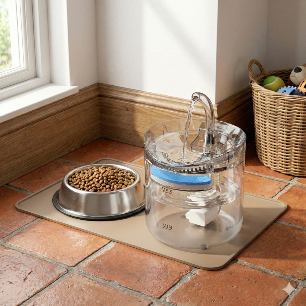 Salud: Fomenta un mayor consumo de agua al mantenerla siempre disponible y limpia, ayudando a prevenir problemas renales en gatos y perros.