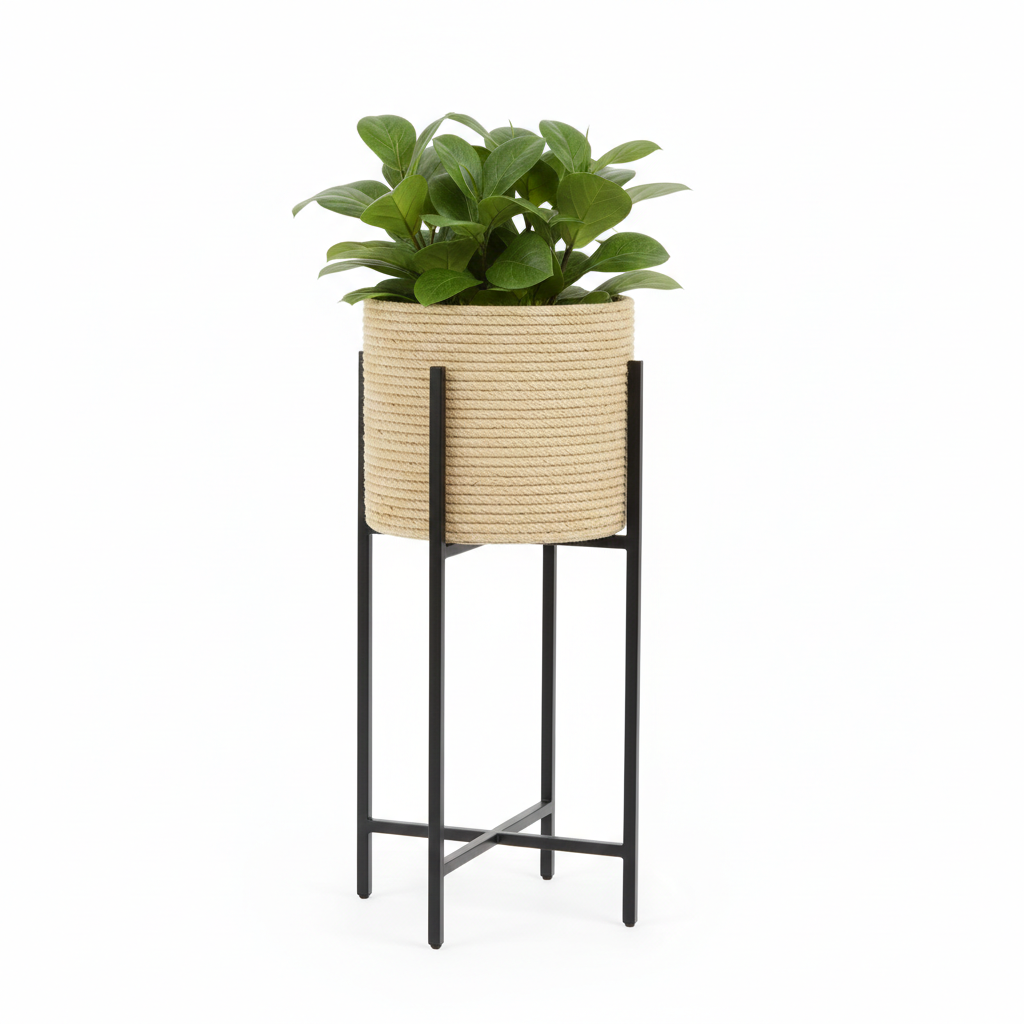 Cuidado: Al ser una fibra natural, se recomienda utilizar una maceta interna con plato para evitar el contacto directo del agua de riego con el fique, prolongando así su vida útil y belleza.