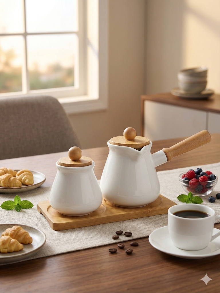 El Set de Recipientes x2 con Base de ADA Design es la definición de elegancia funcional. Este juego combina dos capacidades estratégicas (300ml y 150ml) en una estructura organizada, permitiéndote servir o almacenar ingredientes complementarios con un estilo minimalista y natural que destaca en cualquier mesón o mesa de comedor.